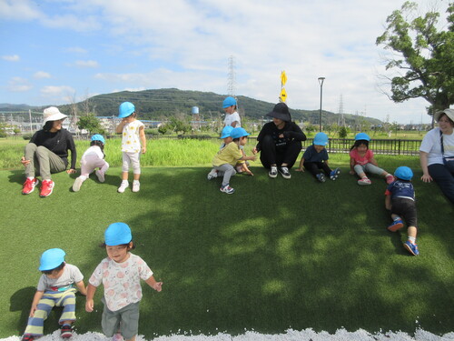 【あひる組】秋晴れの気持ちのいい季節になり、公園で元気に遊んでおります!★安満遺跡公園芝生の山登り...